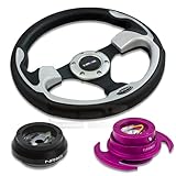 NRG-SRK-120H+001SL+650PP, NRG Innovations 12.5" 320mm Black Leather Silver Trim Racing Steering Wheel Combo with 6 Hole Short Hub Adapter with Gen 3.0 with Handle Purple Quick Release Kit SRK-120H