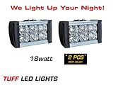 Tuff LED Lights 2 X 6" Inch 18 Watt Super Bright LED Light Bar 990 Lumen ATV UTV Polaris Razor Yamaha Rhino Rigid E Series Can Am Commander 4 X 4 Off Road Jeep