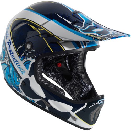 Kali Surfin Adult Avatar Bike Racing BMX Helmet - Blue / LargeUtilizing patented Composite Fusion in-molding technology for a perfect shell/liner connection, this full-face helmet also features a revolutionary mix of fiberglass in its shell materials. These materials form perfectly into a skeleton of expanded protection allowing the overall use of softer EPS foam. What's it all mean? Light Strong.